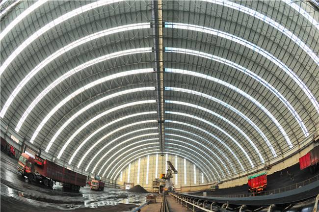 堆场料场封闭式主体结构为新型的钢石狮网架结构,维修结构为石狮钢结构石狮不锈钢板和纤维增强塑料灯具,其外形以石狮网架式和平板为主,连接柱石狮施工自由,设置喷雾自动喷水系统,从而可以实现棚内所有物料的覆盖,减少物料在运输过程中的损耗,起到防尘的作用,减少工厂关闭后的二氧化硫排放量,50mg/m3颗粒排放量小于10mg/m3,非常适合低能耗。低闭库自动感应反应对库存轮胎进行清洁,确保轮胎不受道路污染;封闭的储存区可从源头控制粉尘污染,控制无序排放。